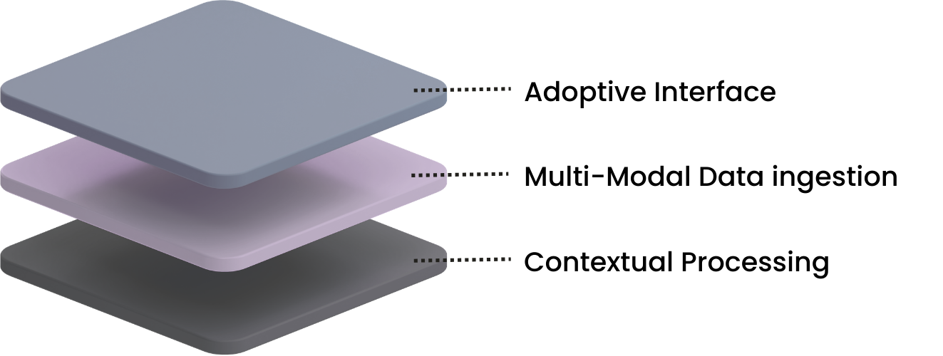• Synthesis pipeline that transitions from raw contextual processing to a fluid, high-fidelity adoptive interface.